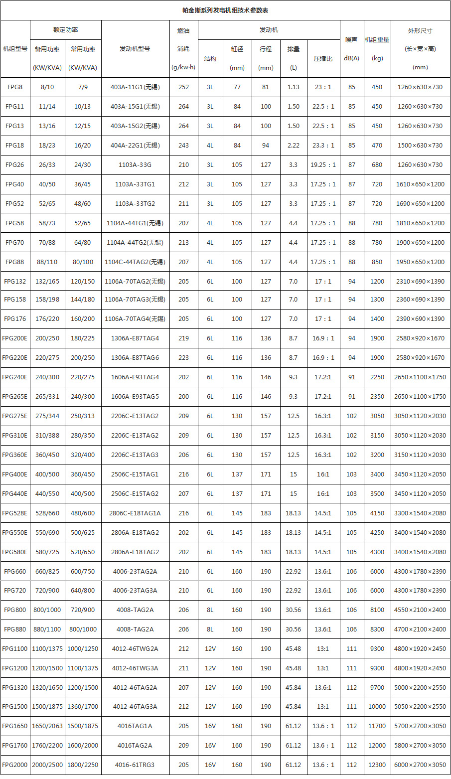 發(fā)電機(jī)組技術(shù)參數(shù):